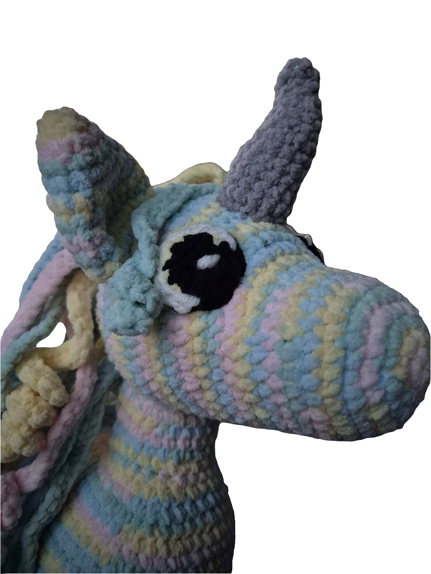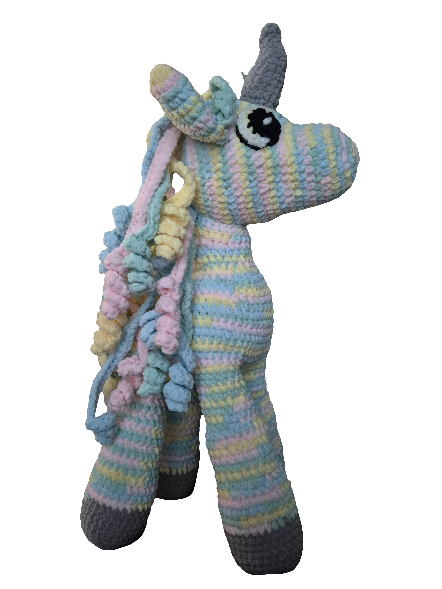 Deze supergave eenhoorn met de naam Aurora heeft alle mooie pasteltinten. Ze heeft wat glitter bij haar hoorn en is gemaakt van superzacht chenille garen. Van hoorn tot hoef is ze 40 cm.🤩